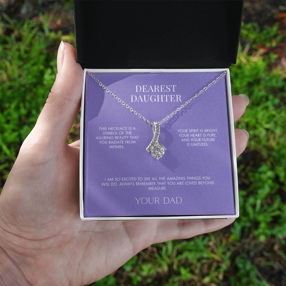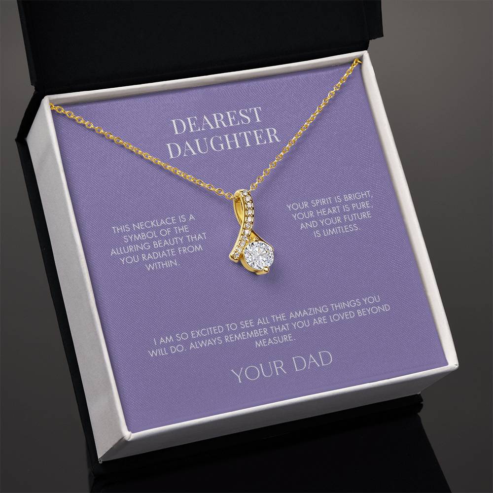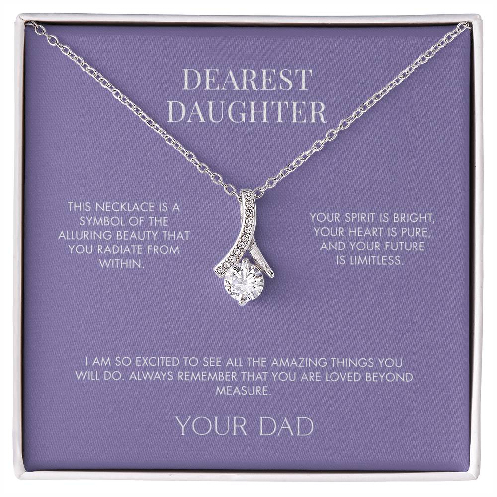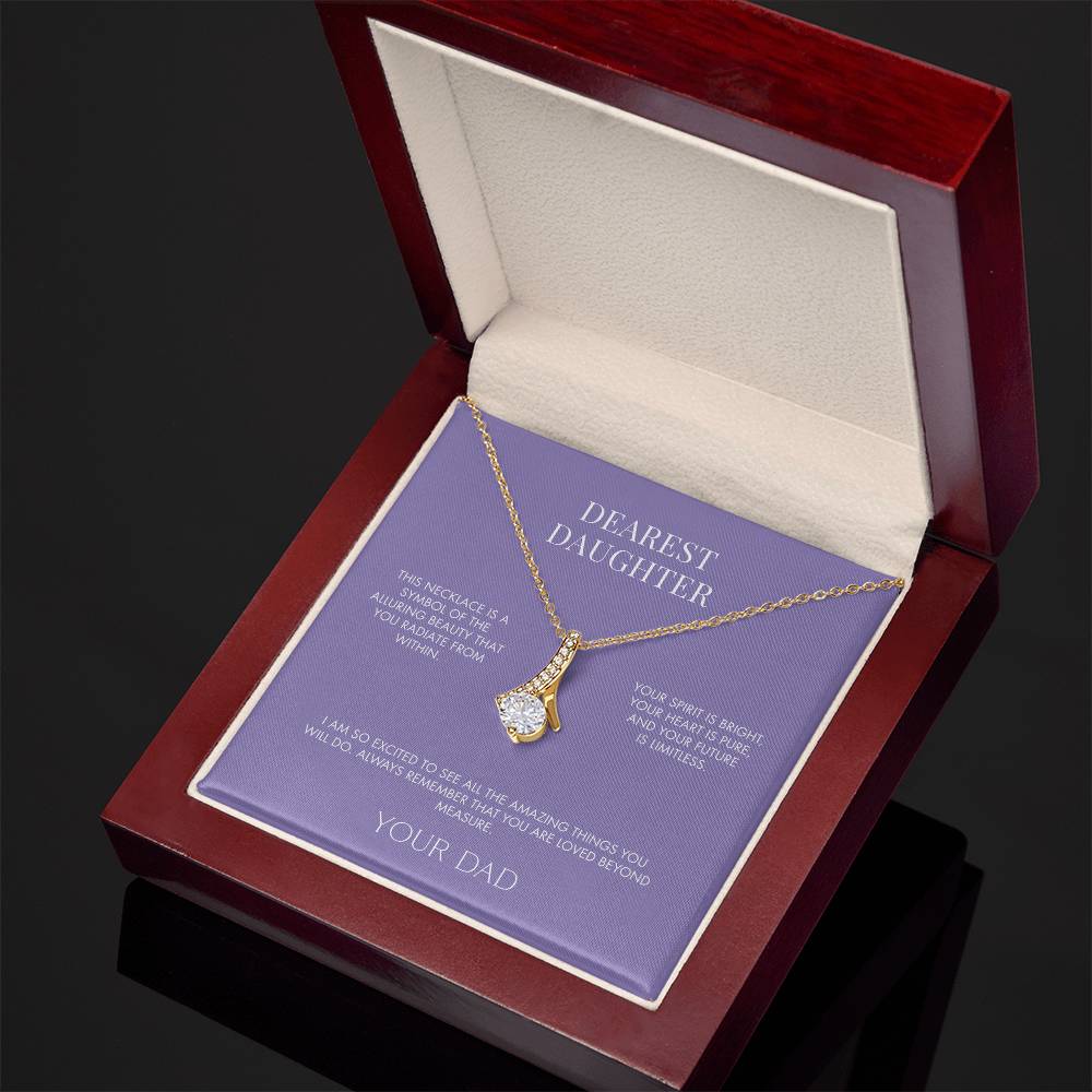 Imagine her reaction when she opens this stunning gift! The Alluring Beauty necklace features a petite ribbon shaped pendant that is sure to dazzle your special someone. Whether it's a birthday or anniversary, make sure to get her a gift she will love for years to come.